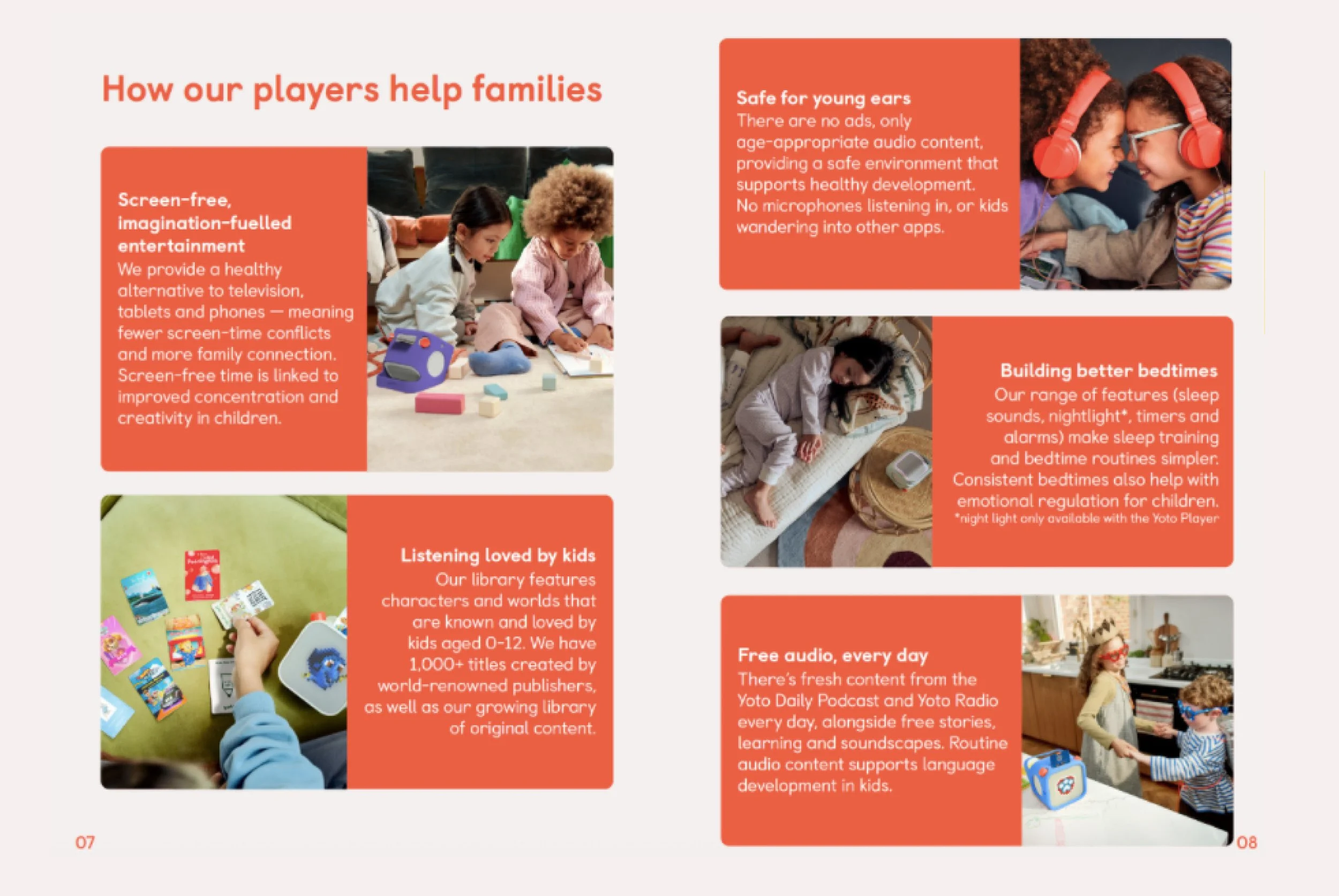 “Rena did a wonderful job of leading Yoto’s tone of voice and storytelling across our campaigns, product packaging and other comms. She brought curiosity and a can-do attitude, working closely with the design team to build compelling ideas and craft joyful, distinctive copy.”